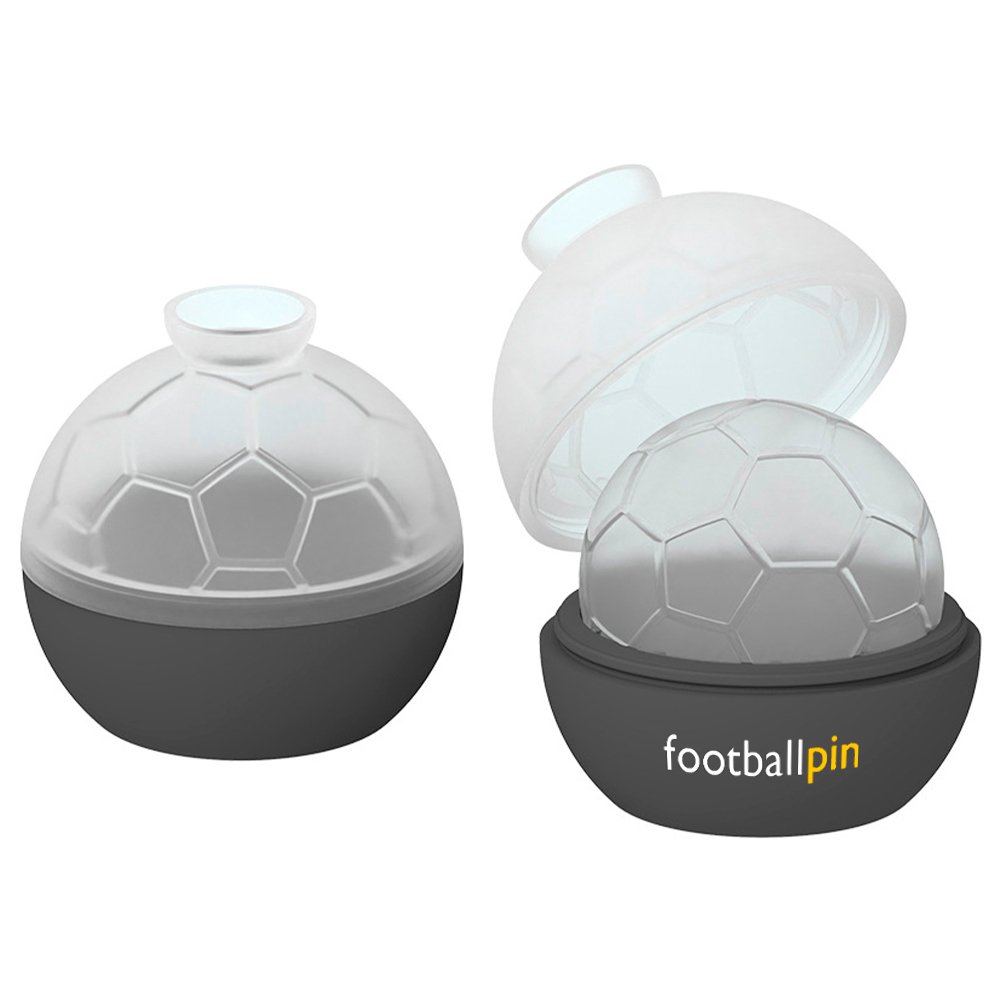 Molde para hielo siliconado de dos piezas con forma y textura de balón de fútbol.De 5.3 cm x 5.5 cm